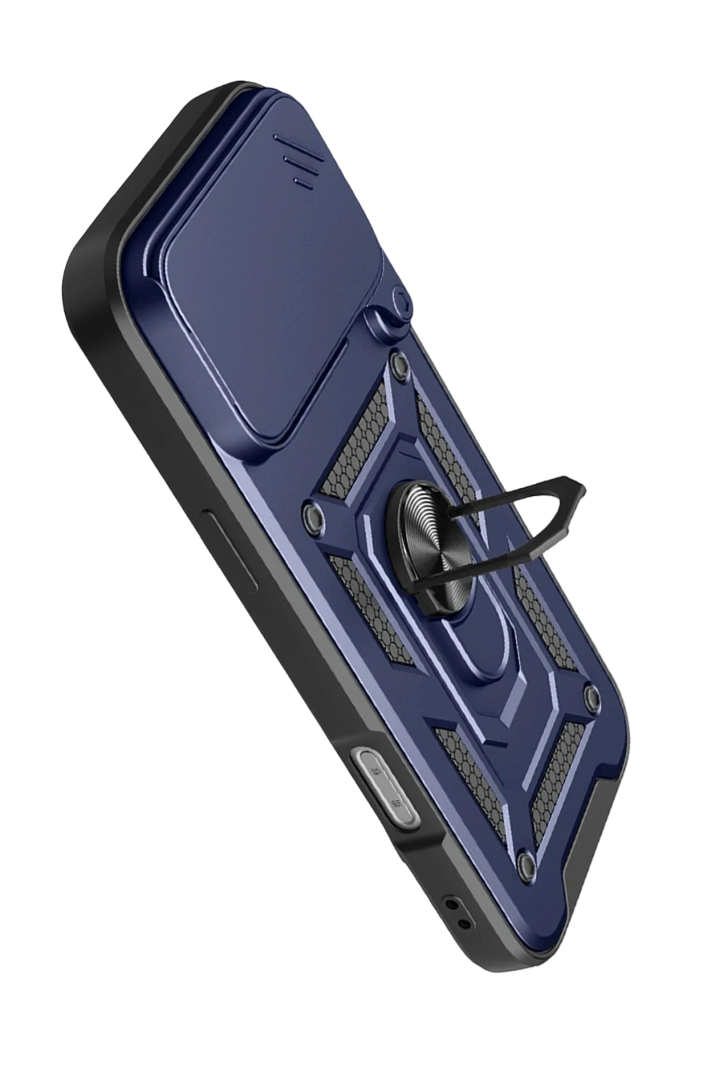 Kılıfın arka kısmında yer alan entegre metal halka hem tutucu hem de stand olarak işlev görür. Eller serbest video izleme, içerik görüntüleme ya da masaüstü kullanımı için idealdir.