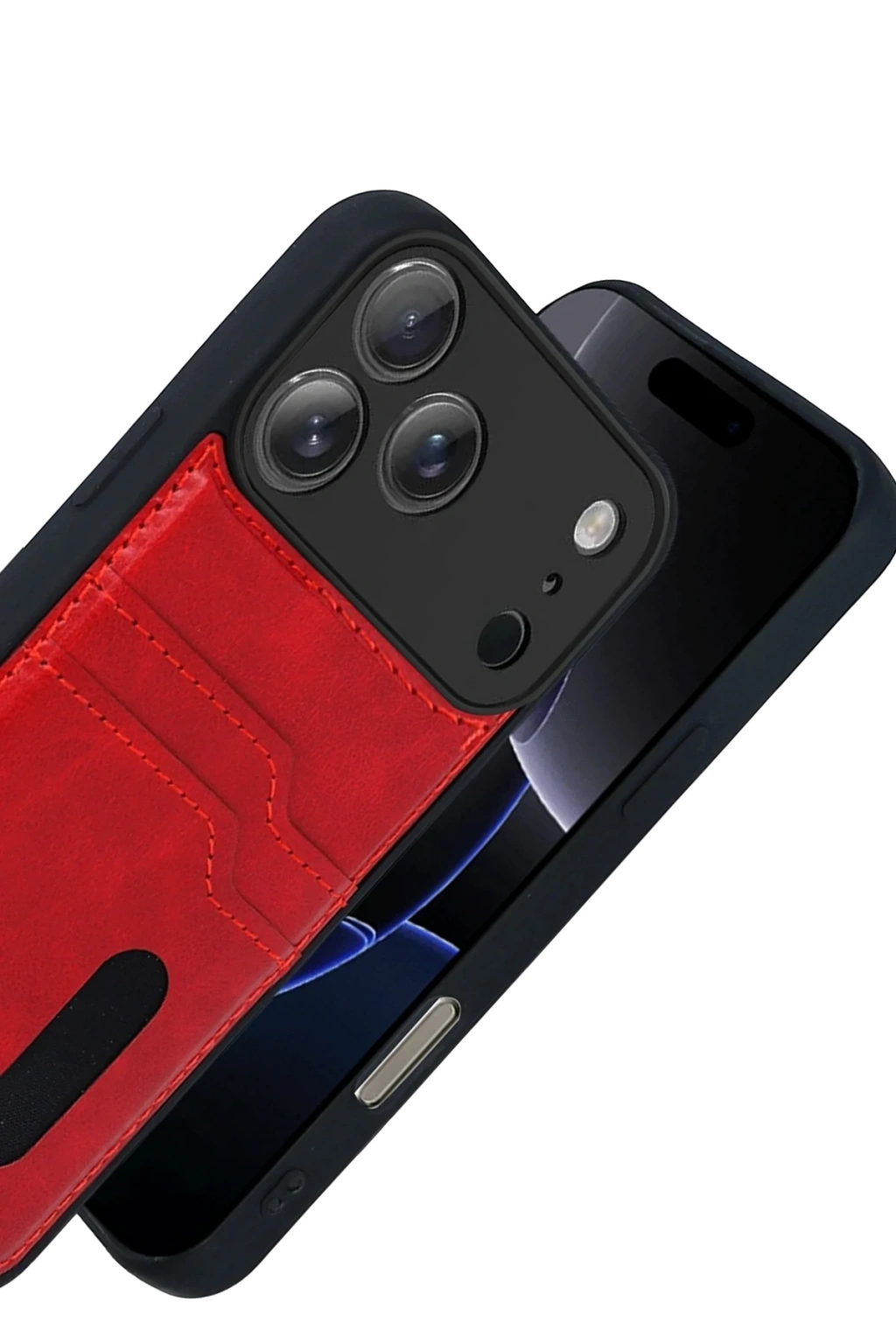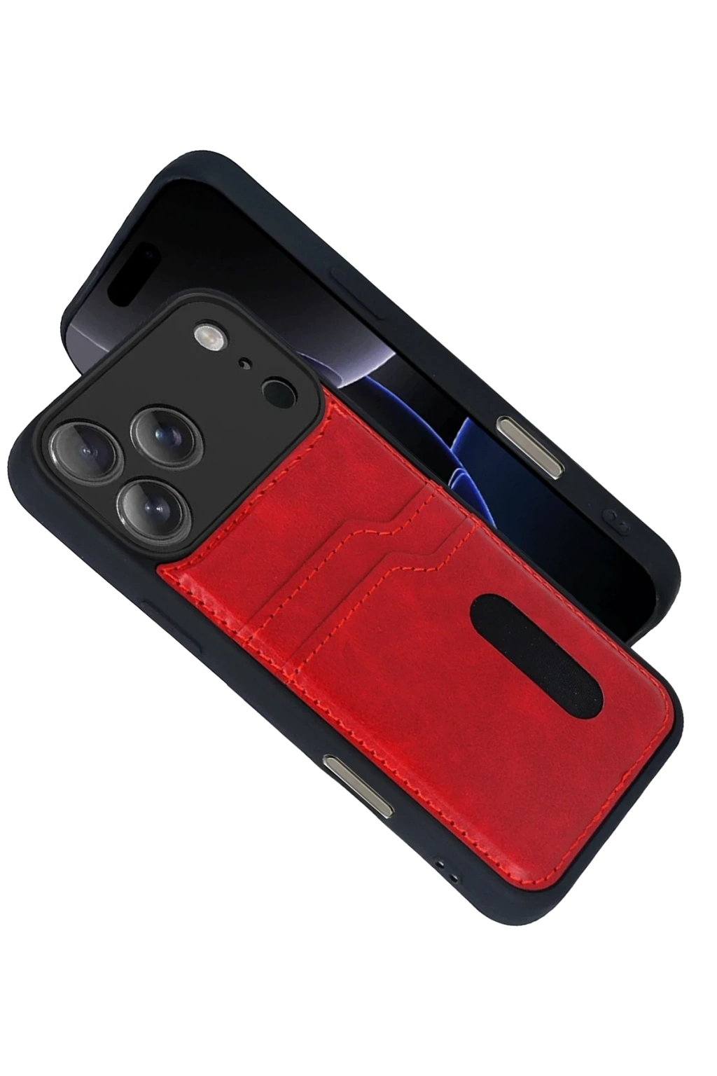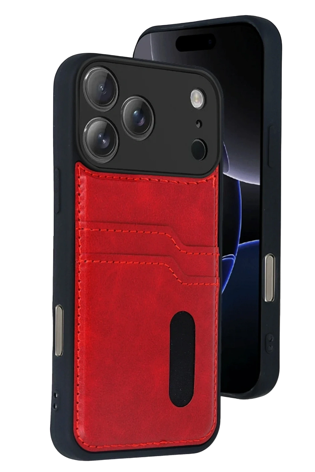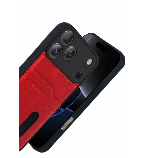 Newface Apple iPhone 17 Pro Sara Kartvizitli Deri Kılıf - Kırmızı
