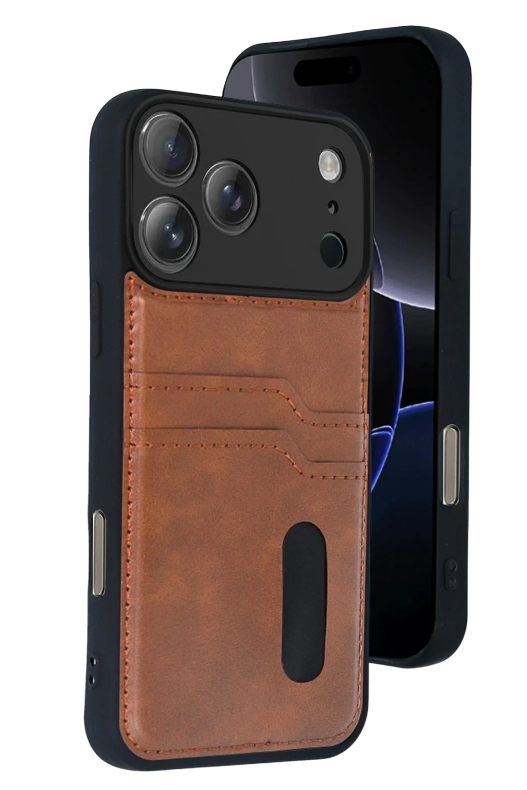 Newface Apple iPhone 17 Pro Sara Kartvizitli Deri Kılıf - Taba