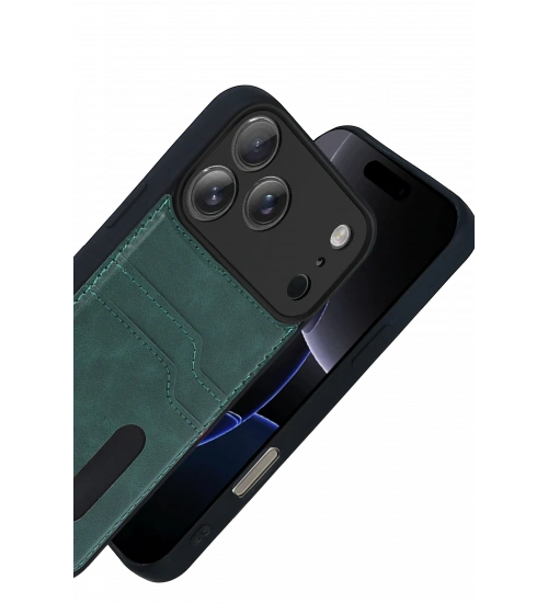 Newface Apple iPhone 17 Pro Sara Kartvizitli Deri Kılıf - Yeşil
