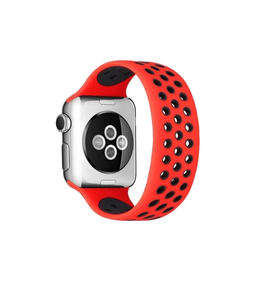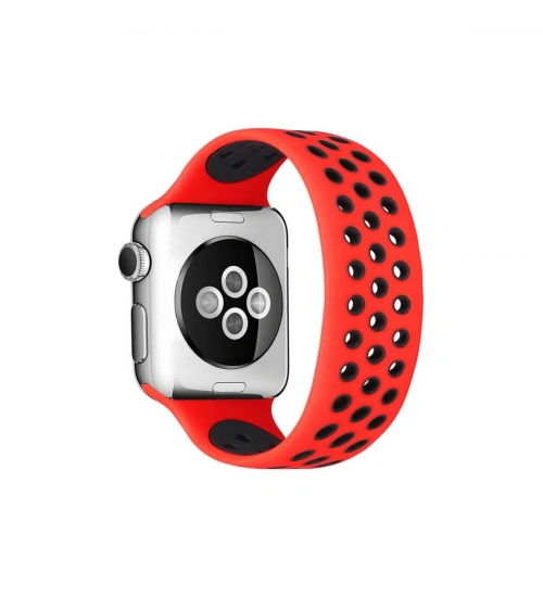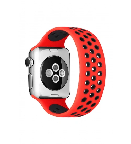 Newface Apple Watch 38mm Ayarlı Delikli Silikon Kordon - Kırmızı-Siyah