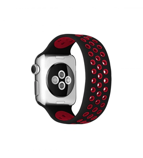 Newface Apple Watch 38mm Ayarlı Delikli Silikon Kordon - Siyah-Kırmızı