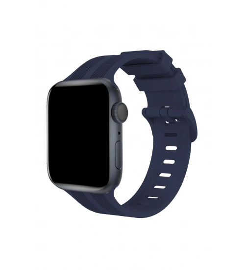 Newface Apple Watch 38mm KR408 Çizgili Silikon Kordon - Lacivert