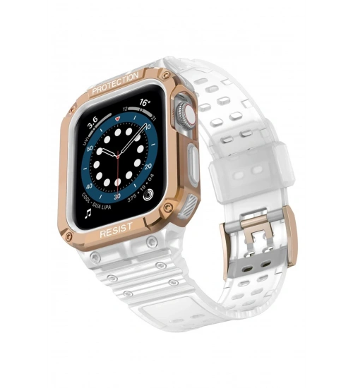 Newface Apple Watch 42mm KR401 Silikon Kordon - Beyaz-Rose
