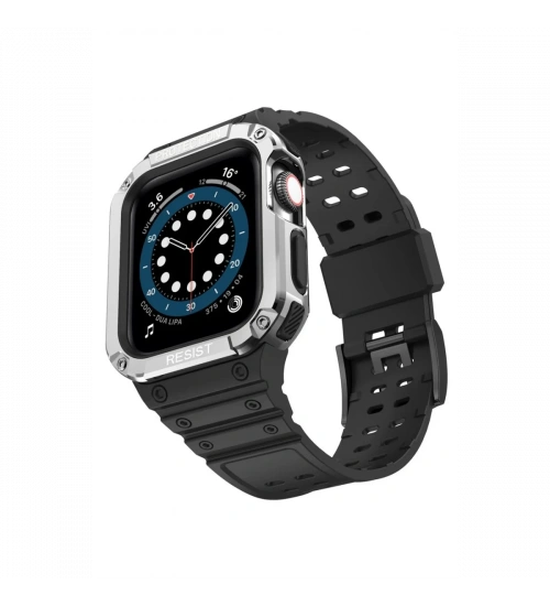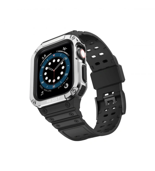 Newface Apple Watch 42mm KR401 Silikon Kordon - Siyah-Gümüş