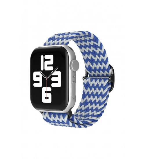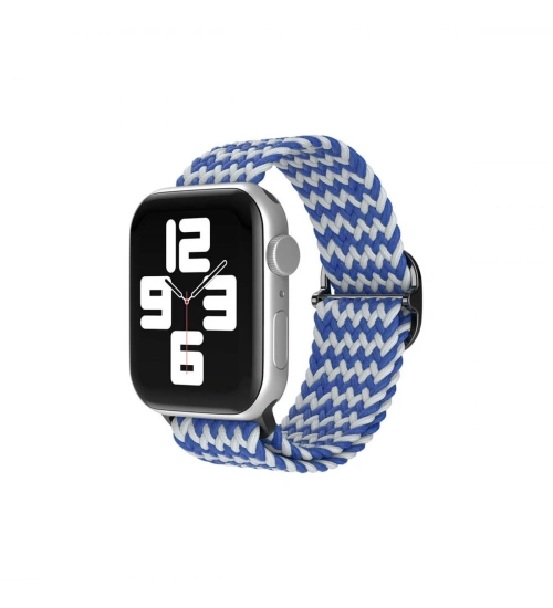 Newface Apple Watch 42mm Star Kordon - Zigzag Beyaz-Mavi