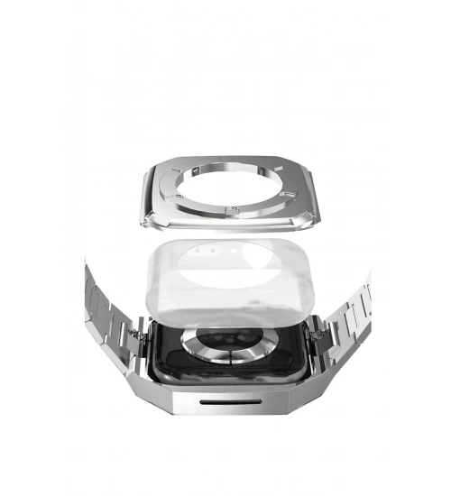 Newface Apple Watch 44mm Metal Petek Kasalı Kordon - Siyah