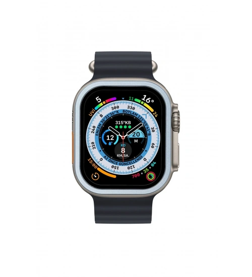 Newface Apple Watch Ultra 49mm Alüminyum Kasa Cam Ekran Koruyucu - Mavi