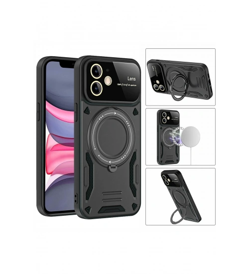 Newface iPhone 11 Kılıf Joy Lens Standlı Kapak - Siyah