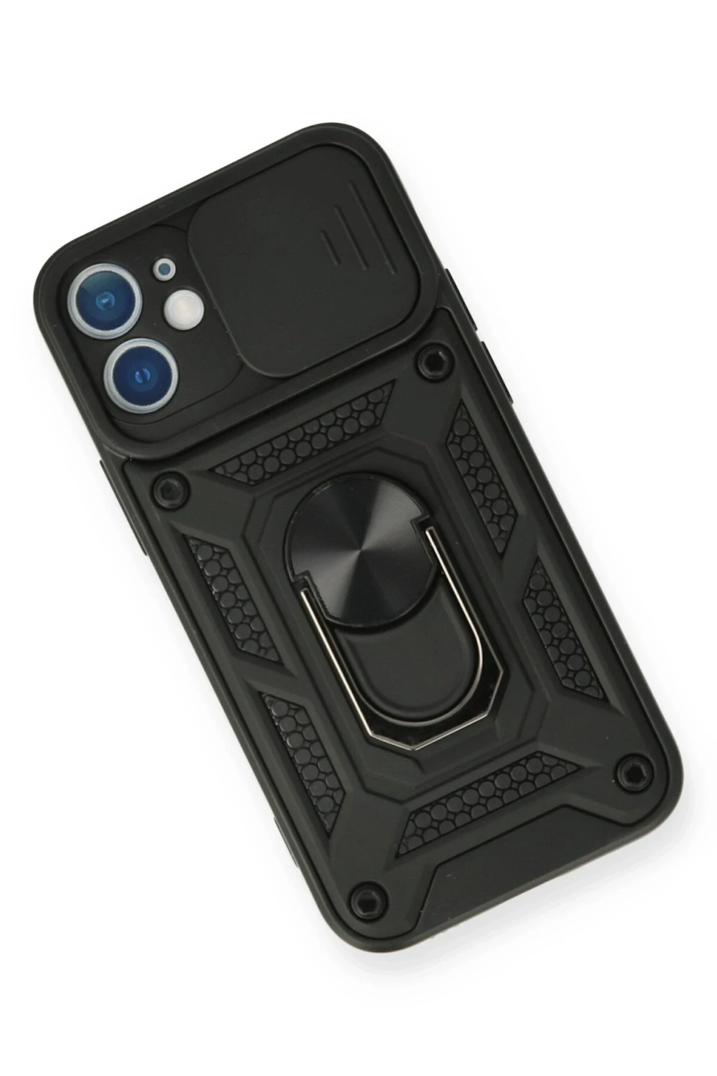 Newface iPhone 11 Kılıf Pars Lens Yüzüklü Silikon - Siyah