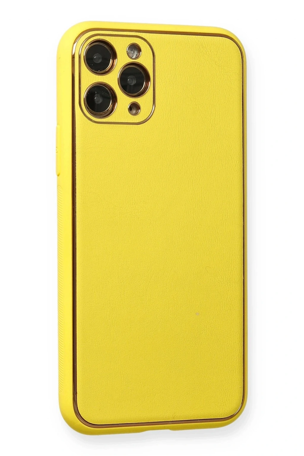 Newface iPhone 11 Pro Kılıf Coco Deri Silikon Kapak - Sarı