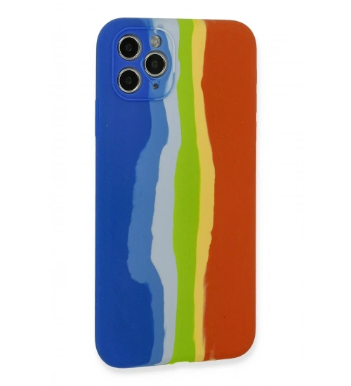 Newface iPhone 11 Pro Kılıf Ebruli Lansman Silikon - Mavi-Turuncu