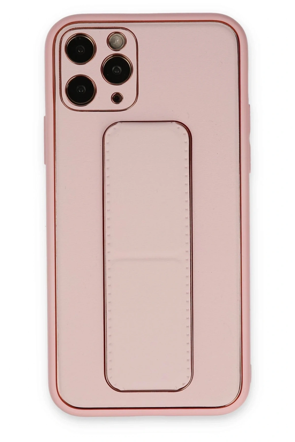 Newface iPhone 11 Pro Max Kılıf Coco Deri Standlı Kapak - Pembe