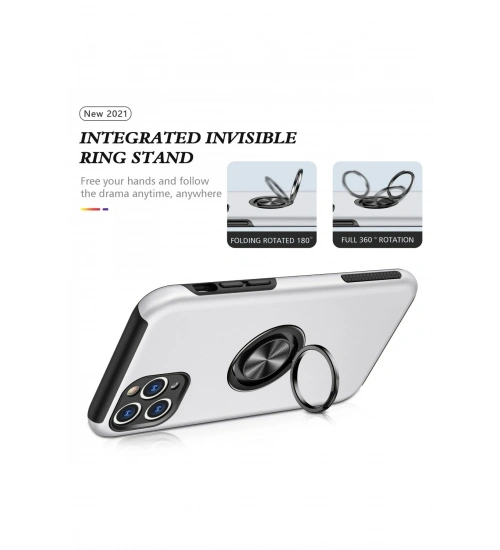 Newface iPhone 11 Pro Max Kılıf Elit Yüzüklü Kapak - Gümüş