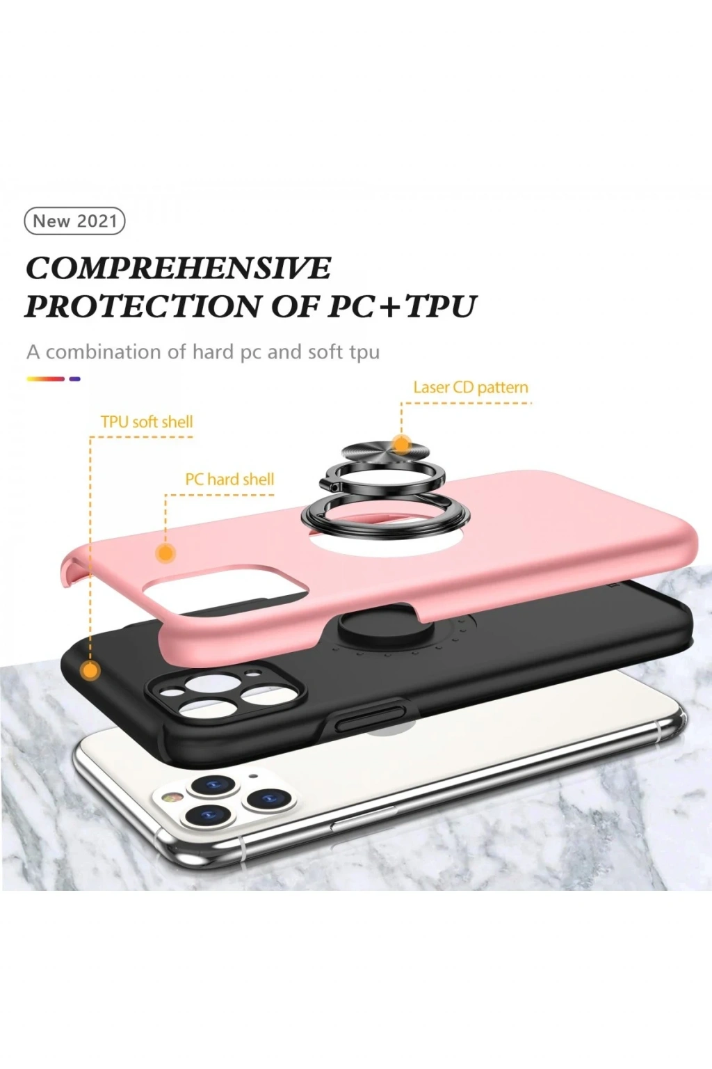 Newface iPhone 11 Pro Max Kılıf Elit Yüzüklü Kapak - Pembe