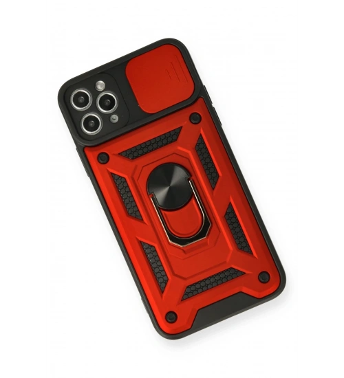 Newface iPhone 11 Pro Max Kılıf Pars Lens Yüzüklü Silikon - Kırmızı