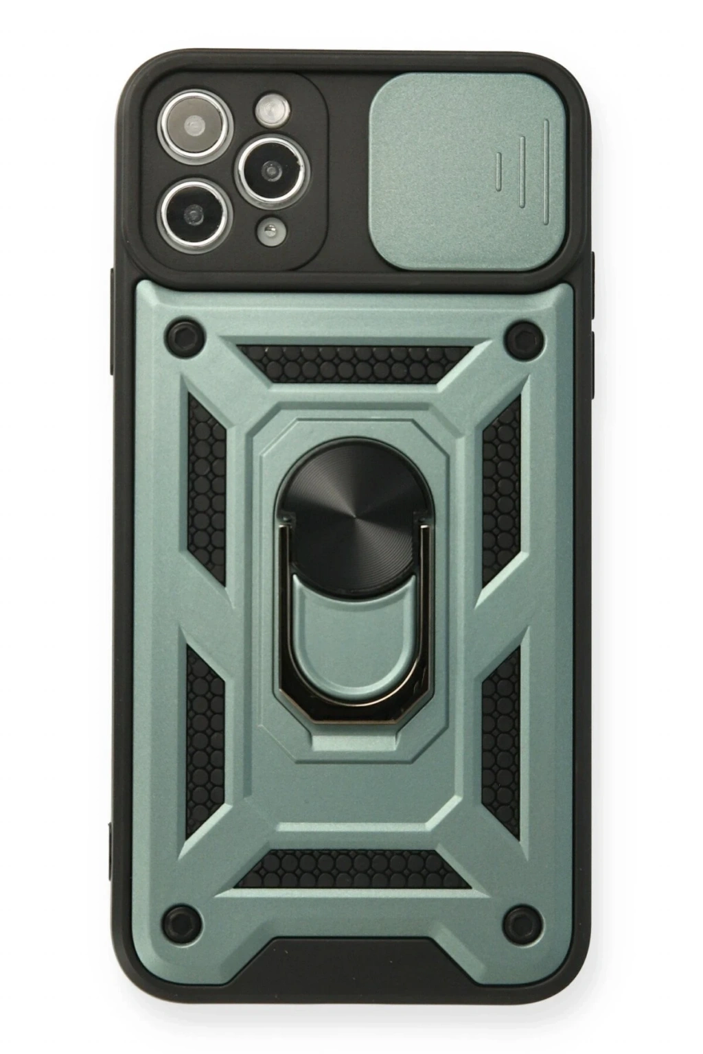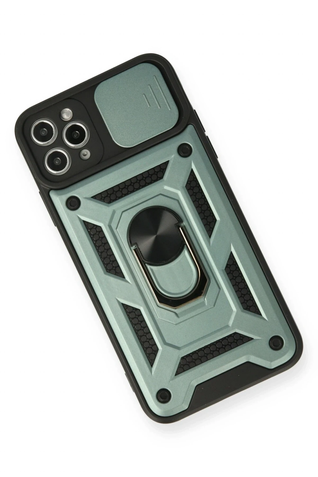 Newface iPhone 11 Pro Max Kılıf Pars Lens Yüzüklü Silikon - Yeşil