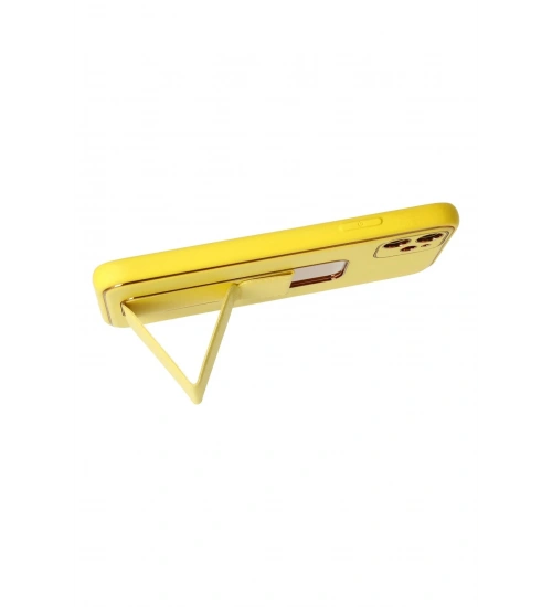 Newface iPhone 12 Kılıf Coco Deri Standlı Kapak - Sarı