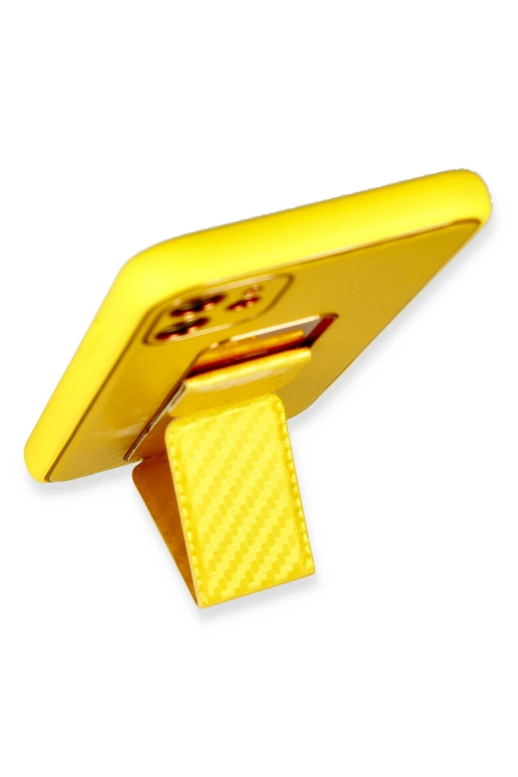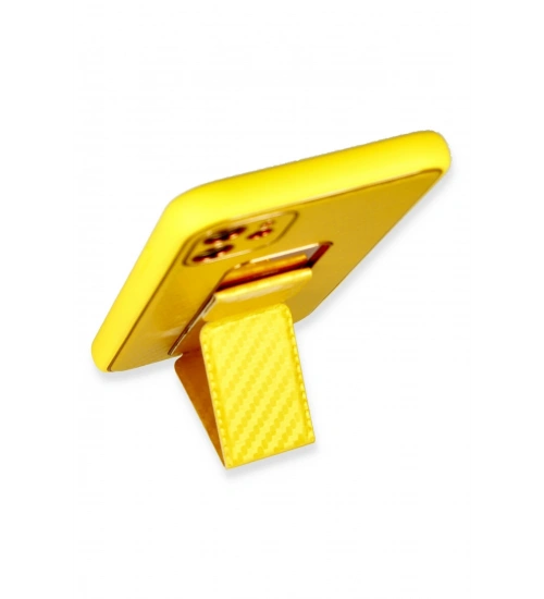 Newface iPhone 12 Kılıf Coco Karbon Standlı Kapak - Sarı