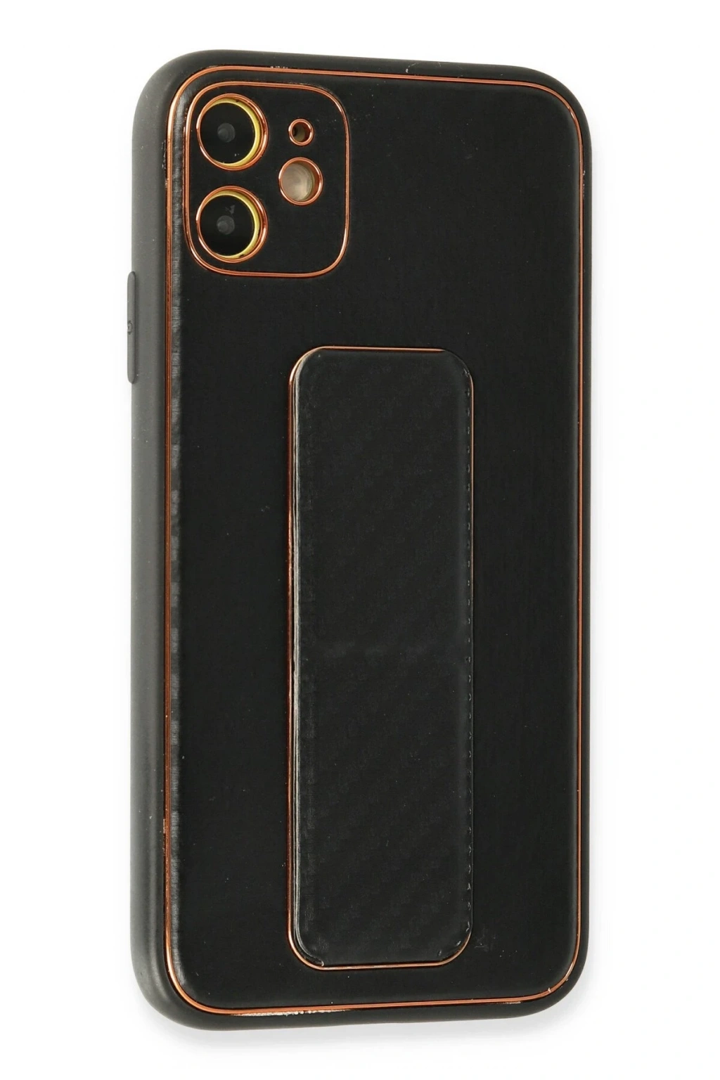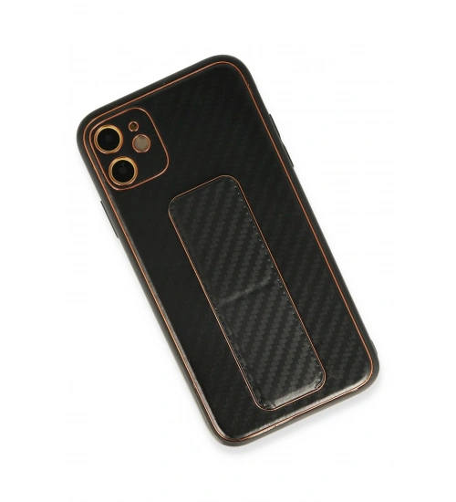 Newface iPhone 12 Kılıf Coco Karbon Standlı Kapak - Siyah