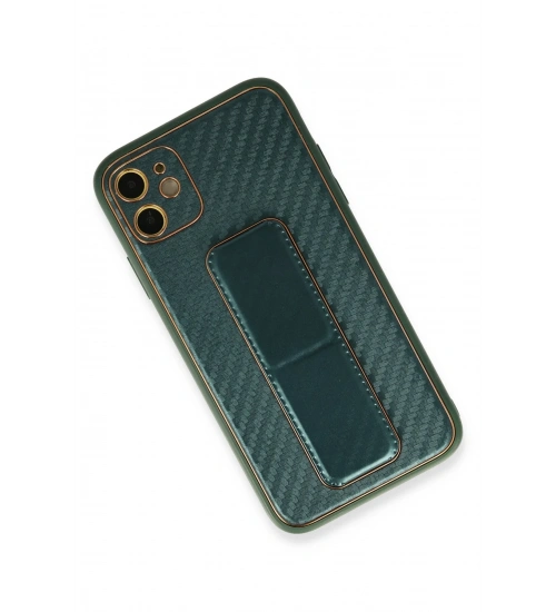 Newface iPhone 12 Kılıf Coco Karbon Standlı Kapak - Yeşil