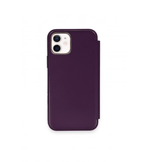 Newface iPhone 12 Kılıf Dolpin Kapaklı - Derin Mor