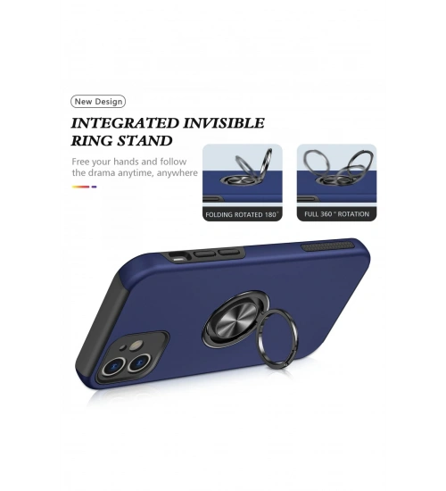 Newface iPhone 12 Kılıf Elit Yüzüklü Kapak - Lacivert