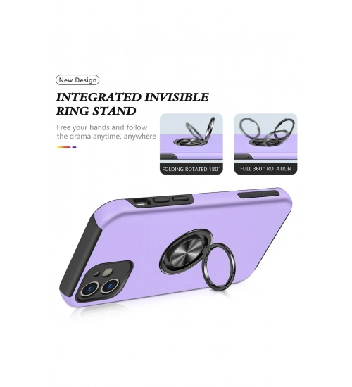 Newface iPhone 12 Kılıf Elit Yüzüklü Kapak - Mor