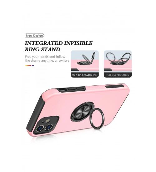 Newface iPhone 12 Kılıf Elit Yüzüklü Kapak - Pembe