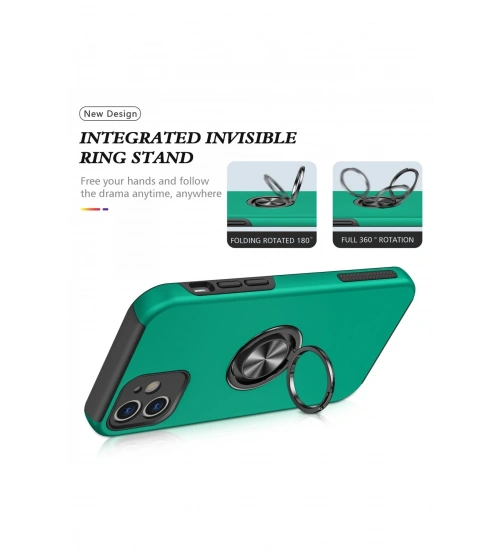 Newface iPhone 12 Kılıf Elit Yüzüklü Kapak - Yeşil