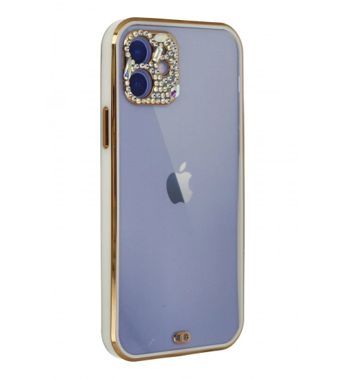 Newface iPhone 12 Kılıf Liva Taşlı Silikon - Beyaz