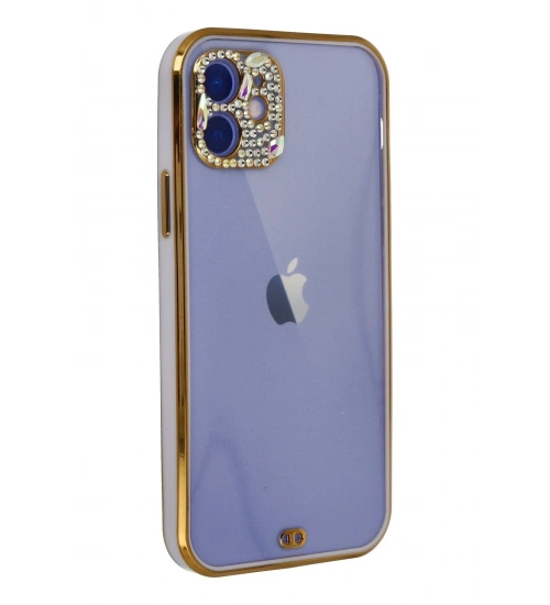 Newface iPhone 12 Kılıf Liva Taşlı Silikon - Mor