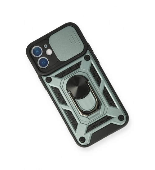Newface iPhone 12 Kılıf Pars Lens Yüzüklü Silikon - Yeşil