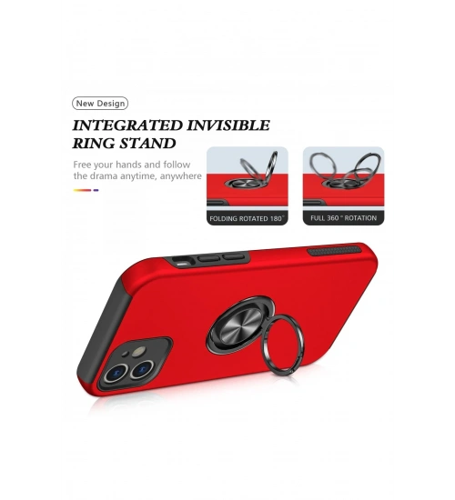 Newface iPhone 12 Mini Kılıf Elit Yüzüklü Kapak - Kırmızı