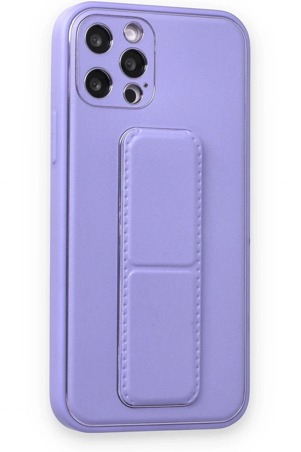 Newface iPhone 12 Pro Kılıf Coco Deri Standlı Kapak - Koyu Lila