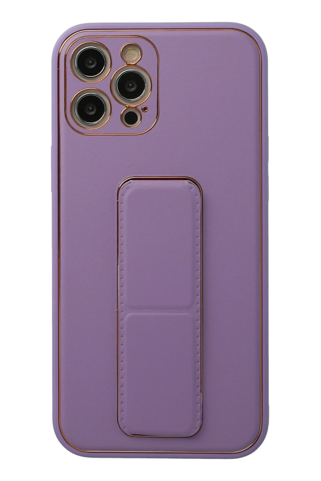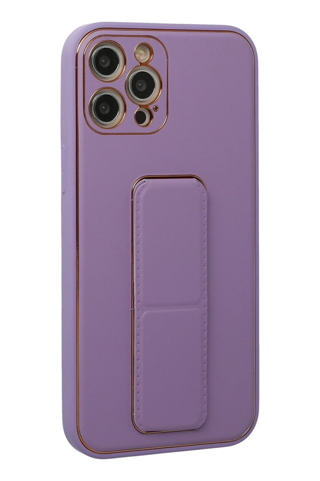 Newface iPhone 12 Pro Kılıf Coco Deri Standlı Kapak - Lila