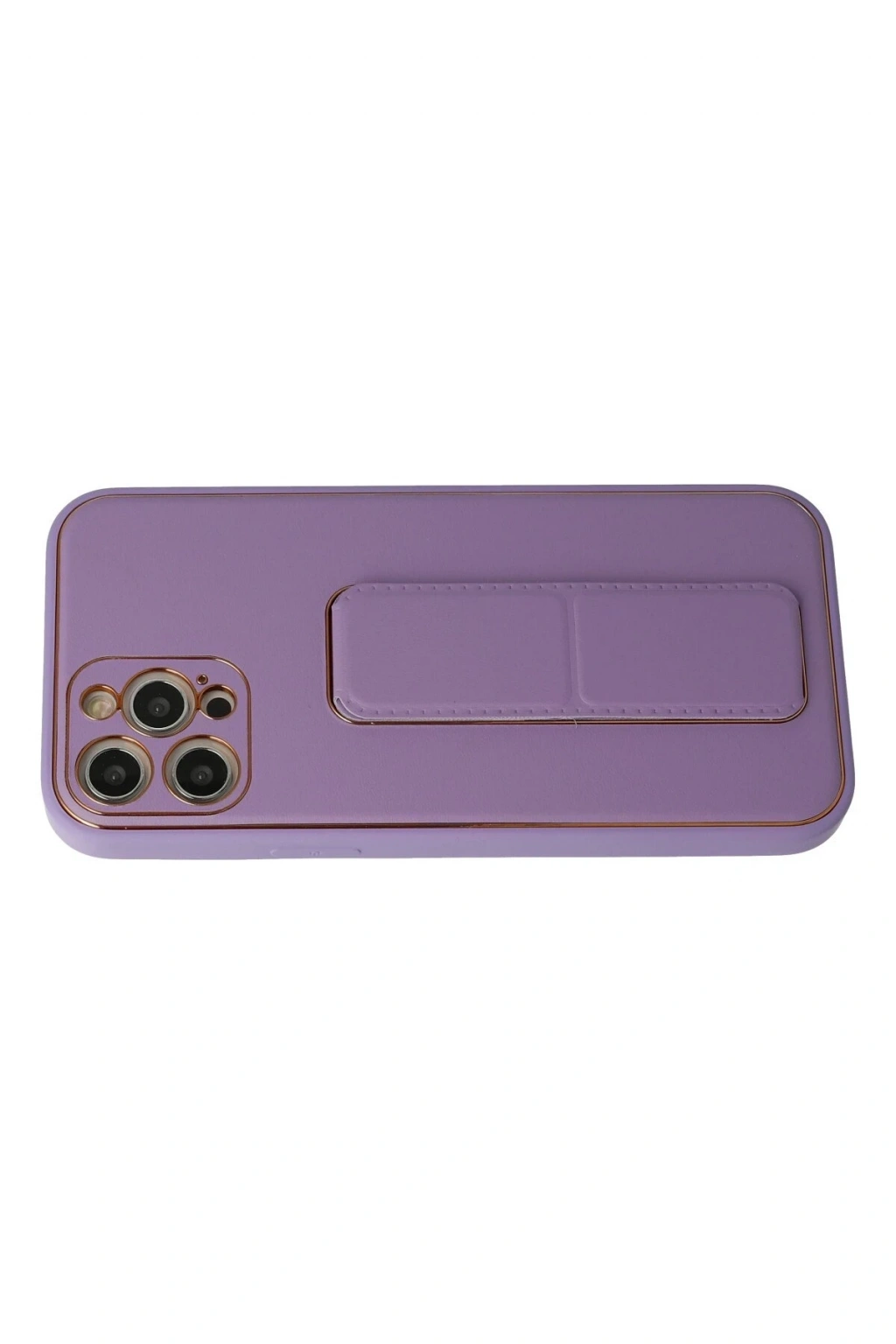 Newface iPhone 12 Pro Kılıf Coco Deri Standlı Kapak - Lila