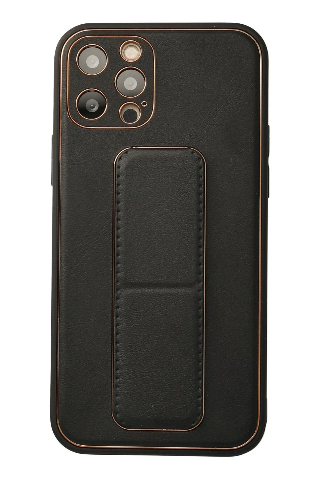 Newface iPhone 12 Pro Kılıf Coco Deri Standlı Kapak - Siyah