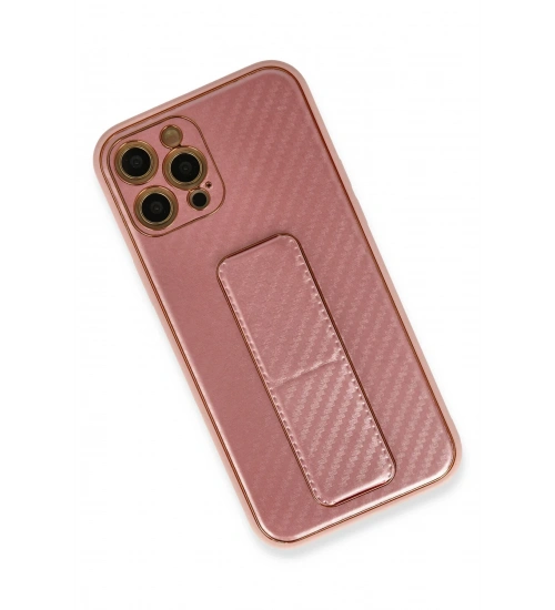Newface iPhone 12 Pro Kılıf Coco Karbon Standlı Kapak - Pembe