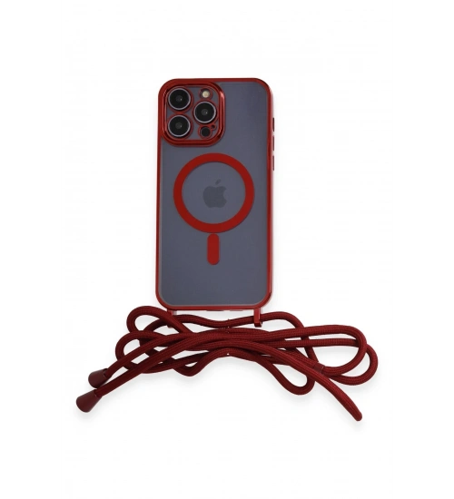 Newface iPhone 12 Pro Kılıf Divo Lazer Askılı Magsafe Kapak - Kırmızı