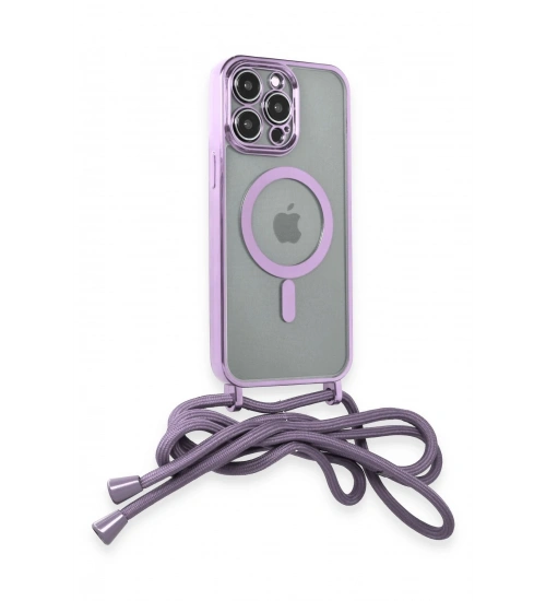 Newface iPhone 12 Pro Kılıf Divo Lazer Askılı Magsafe Kapak - Lila