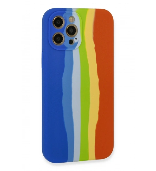 Newface iPhone 12 Pro Kılıf Ebruli Lansman Silikon - Mavi-Turuncu
