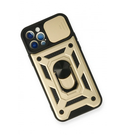 Newface iPhone 12 Pro Kılıf Pars Lens Yüzüklü Silikon - Gold