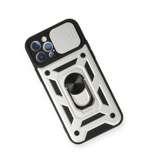 Newface iPhone 12 Pro Kılıf Pars Lens Yüzüklü Silikon - Gümüş