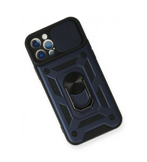 Newface iPhone 12 Pro Kılıf Pars Lens Yüzüklü Silikon - Lacivert