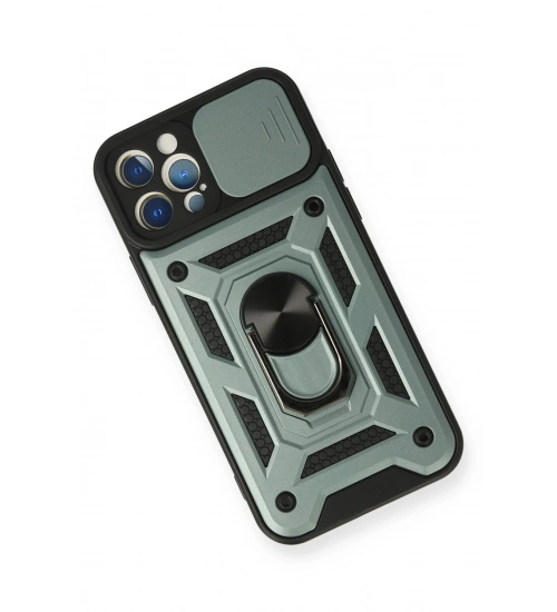 Newface iPhone 12 Pro Kılıf Pars Lens Yüzüklü Silikon - Yeşil