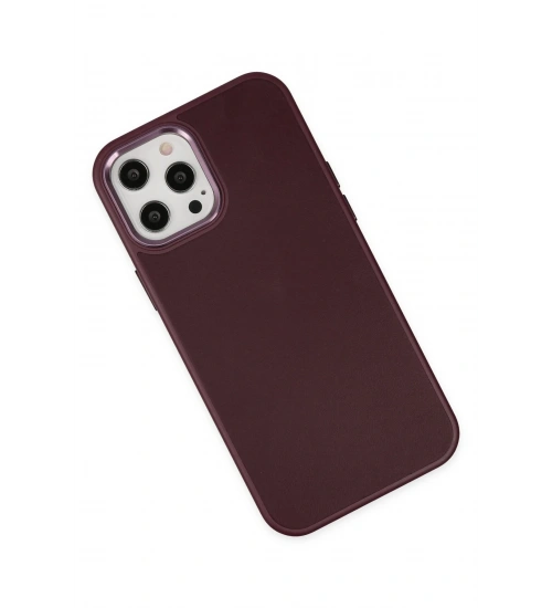 Newface iPhone 12 Pro Max Kılıf Asya Deri Silikon - Mürdüm