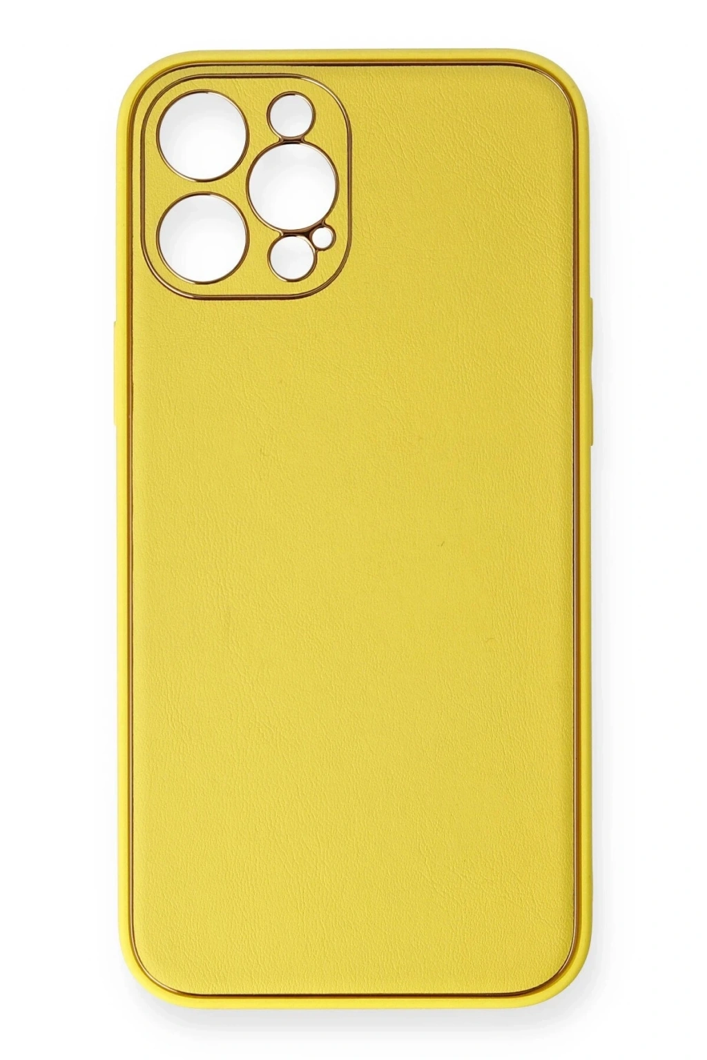 Newface iPhone 12 Pro Max Kılıf Coco Deri Silikon Kapak - Sarı