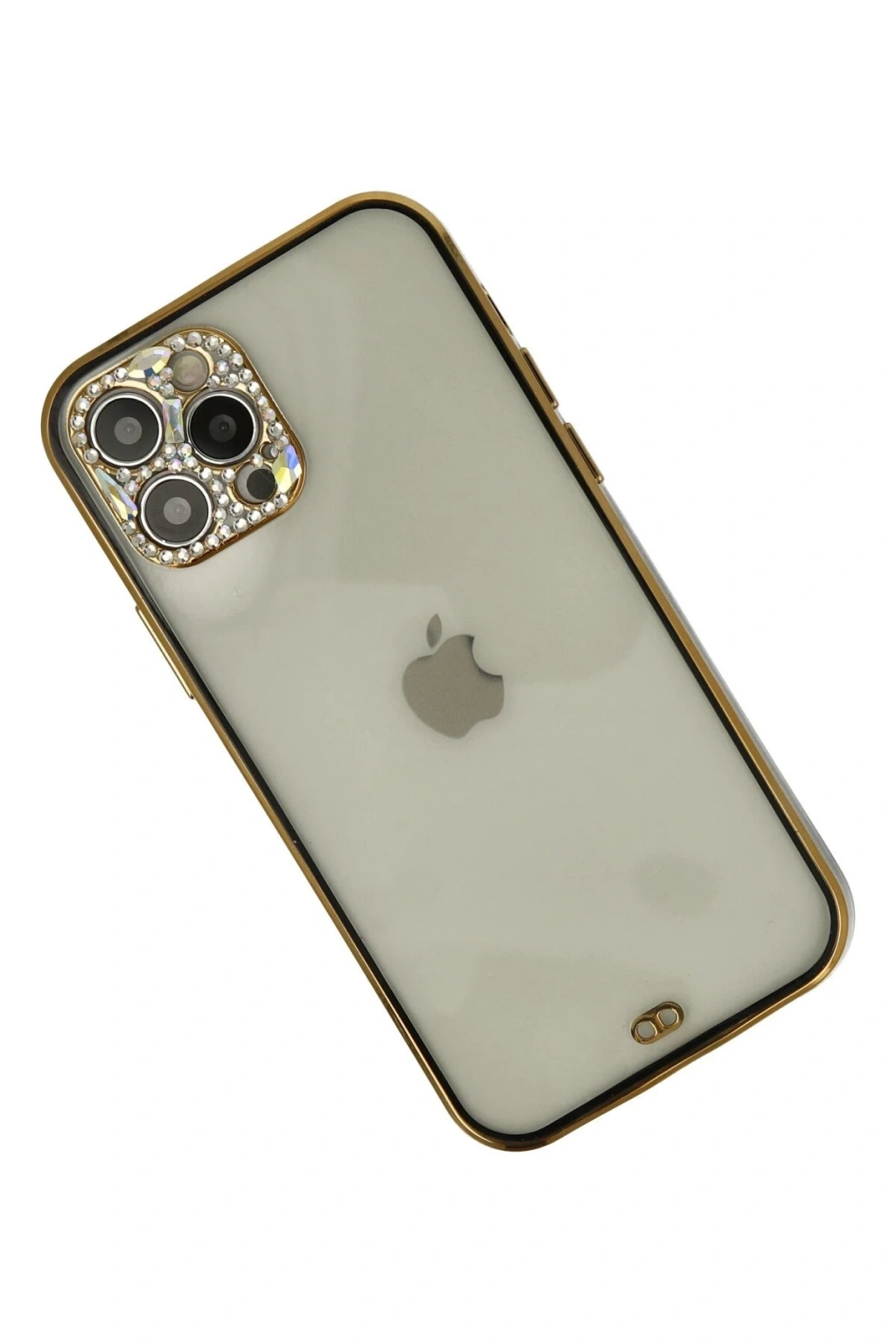 Newface iPhone 12 Pro Max Kılıf Liva Taşlı Silikon - Siyah