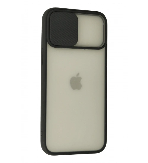 Newface iPhone 12 Pro Max Kılıf Palm Buzlu Kamera Sürgülü Silikon - Siyah